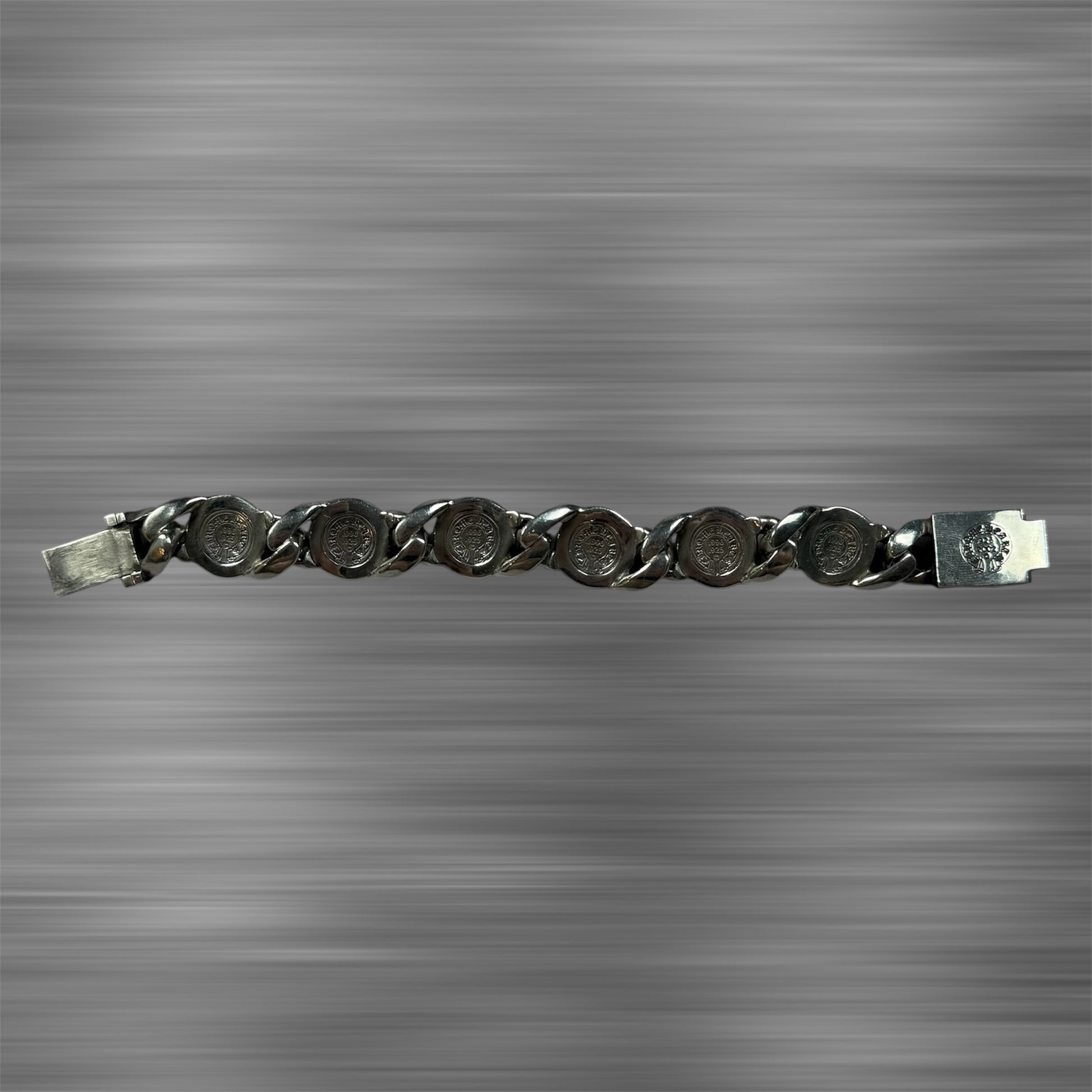 The Chrome Hearts Fleur Cuban Bracelet is a sterling silver piece featuring a bold Cuban link chain and a signature fleur-de-lis motif, blending luxury with gothic-inspired design. It’s highly sought after and a symbol of Chrome Hearts’ craftsmanship.